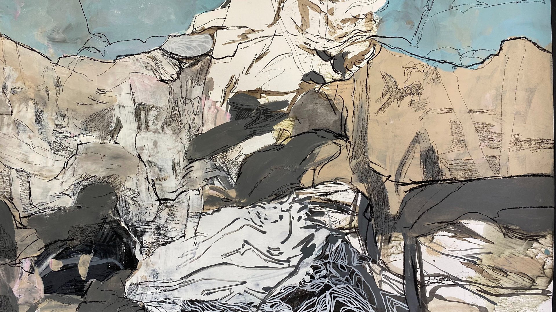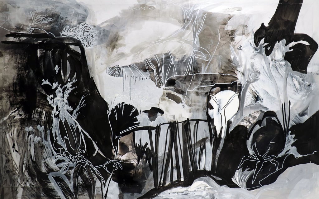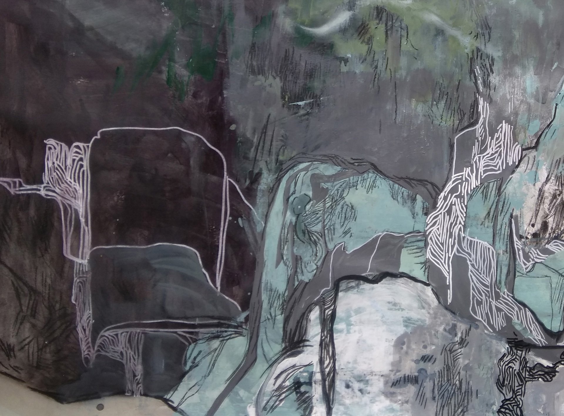 - A curious situation - he commented - Because there is no clear boundary between layers, the difference is transmitted by a graphic code that includes the density of color and the profusion of lines in the drawing. This usually doesn't jump out at you right away because there is no horizon line, you only notice it after some time, your vision needs time to focus on the situation and then "bang" that open view appears, with the ground dissolving due to the weight of things, becoming a fluid skin incapable of containing what is above and at the same time hiding what is below. The surface does not exist as a plane of containment for the landscape and the vision sinks into this lack of density, it seems like a living world that moves, a world seen through movement, almost ethereal. This is a portrait of a state of change.