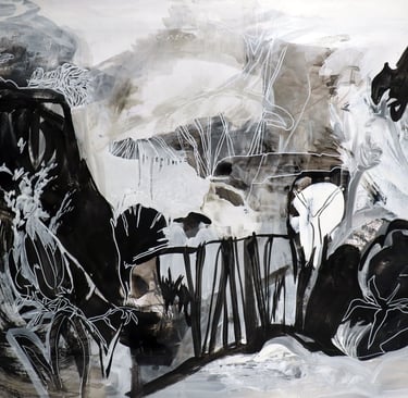The meaning is not the most important thing, nor is the justification. What interests me is that it appeared in my head in the same way that the gestures appeared, forged with the energy of that moment and imbued with the same feeling. At the time it was just a set of words that empirically had the same vibration as the works. Later I realized that there was a concept that transversally ran through these works and that had to do with the visual energy of the landscape and the movement that comes from it, which is projected onto the paintings with a signature typical of fleeting impressions. Three moments spaced out in time had contributed to the birth of this concept, and together they contributed to understanding the words that had been chosen to name the paintings.