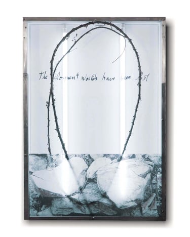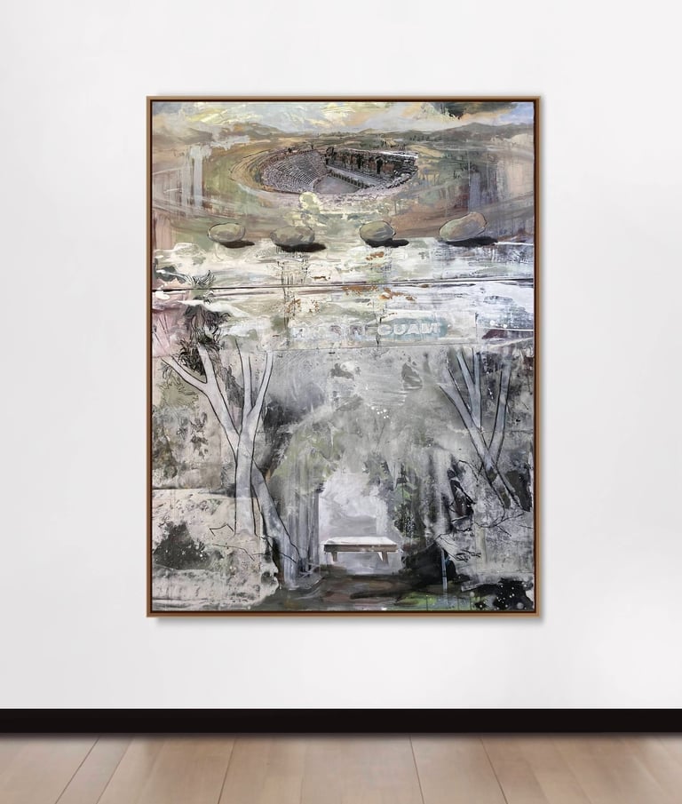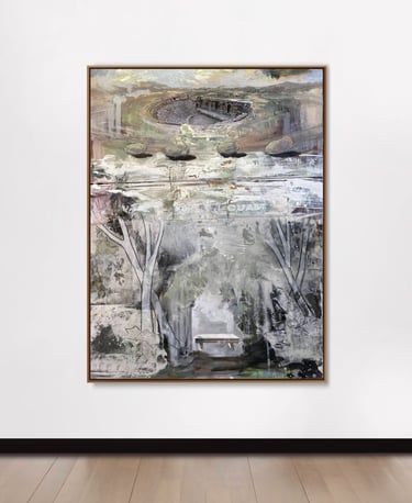 The upper part of the painting had to do with a completely different subject - Moving stones in the landscape without the intervention of human hands. The idea had come about after seeing what happened to the stones in Death Valley, the so-called "Sailing Stones", a mystery that was solved when someone managed to capture the movement of one of these stones in time-lapse. I preferred the mystical explanations because they stimulated my ideas about the hidden forces in nature that still remain a mystery, as well as making the site much more interesting.