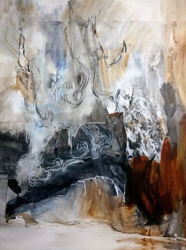 The works in "Ageless in the Raw" series started in 2022 and are related to the dynamic quality of the landscape and the perpetuation of its regeneration through a timeless matrix, that exposes to our eyes a vitality that constantly changes everything. Diving into the hyper-reality of an extensive context, results in a lot of information entering our senses, different from what we are used to in everyday life in cities. Living in a clean and lucid state of mind, within a natural landscape, are factors that amplify sensations, providing unique experiences of excruciating clarity, the result is a great activity of the imagination, which for these reasons, runs in many directions, leaving the feeling that there are more things under the sun than one suspects, this is another important point in the “Ageless in the Raw” series - seeing the world as an immense overlap of layers that dynamically mix in an internal osmosis - something that had to do with the raw landscape, where the human frame is missing. The raw state of the landscape highlights this void and the reaction is to fill it with an overvaluation of the dramatic charge, mythical facets that symbolized the action of telluric beings imprisoned in the primordial elements, characters that, although not visible, express themselves in the shadows of tangible things, as it happens in the presence of a certain group of trees along a waterline, the crunch of rocks, dancing flames of a forest fire or the roar of water through the polished stones of streams, simulating whispers and voices - I was interpreting organization and vitality of the natural world as being the result of the intervention of a supra-real entity, beyond reach in the sense of being on another level or in another dimension.